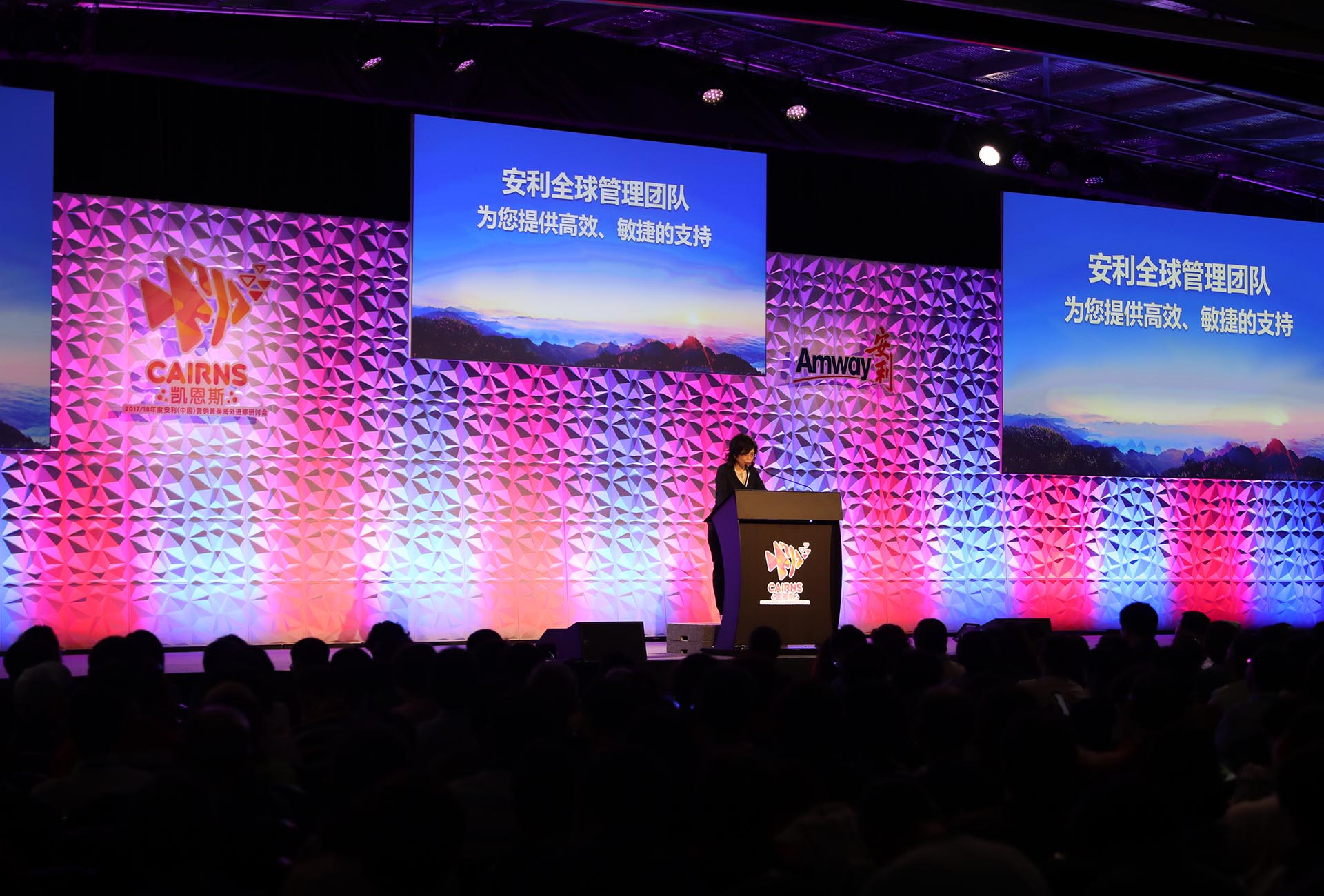 Amway China returned to Australia for the sixth time with more than 6,000 guests for their annual Leadership Seminar, this time held in Cairns. Seven waves of guests attended the 4-day seminar and incentive program between 21 March – 15 April 2019. Designed and organised by Encore, the business sessions and concluding Gala Program treated guests to a spectacular experience including a special blended reality sequence created using layered multimedia, holographic effects and choreographed robotics show with a live performer.