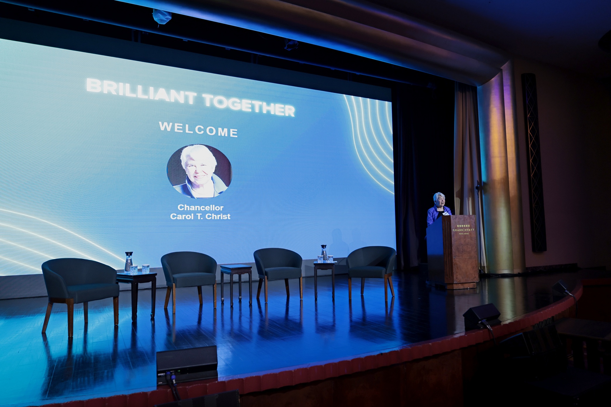 UC Berkeley ได้จัดงานสองวันที่ Grand Hyatt Hong Kong ซึ่งเป็นส่วนหนึ่งของโรดโชว์ระดับโลก งานนี้ยังเป็นการอําลานายกรัฐมนตรี Carol Christ และต้อนรับนายกรัฐมนตรี Richard Lyons ที่กําลังจะมาถึง